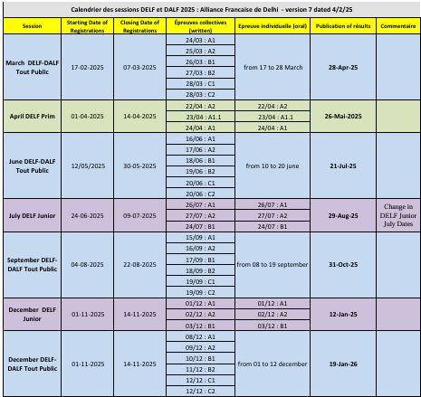 In the table below you will find the tentative dates for the DELF/DALF exams in2025.Please be aware that these dates may be subject to change.